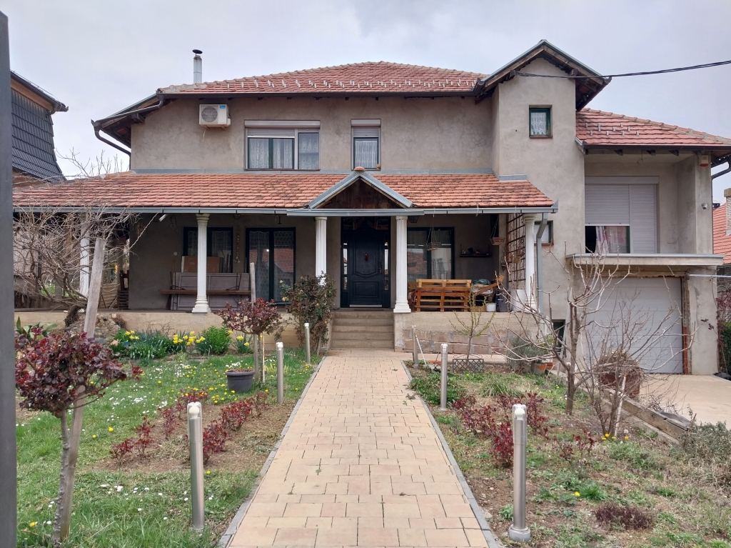 Kuca se nalazi na pocetku naselja u blizini crkve. Novogradnja, sa tri etaze i dva ulaza. U suterenskom delu je garaza, kotlarnica, dve podrumske prostorije. Visoko prizemlje je nezavrseno(siva faza), sastoji se od prostranog dnevnog boravka koji ima izlaz na terasu, kuhinje,trpezarije,hodnika i garsonjere sa kupatilom. Obzirom da je nezavseno moguca je promena rasporeda. Unutrasnje stepenice vode na medjusprat-dve spavace sobe, terasa i kupatilo. Na drugom spratu je dnevni boravak sa trpezarijom, kuhinja, dve spavace sobe, kupatilo, terasa. Dve ostave u tavanu. Medjusprat i drugi su sredjeni,useljivi. Etazno grejanje na cvrsto gorivo, moguc prikljucak na gas. Zidana po sistemu senvic zid :blok-kamena vuna-cigla.Zvucna podna izolacija. Obezbedjena video nadzorom i alarmnim sistemom.Ograda kovano gvozdje, kapija sa daljinskim upravljanjem.