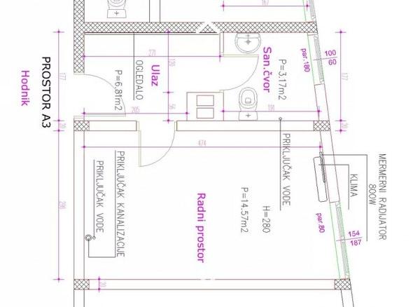 Poslovni prostoru blizini crkve,poseduje sopstveni sanitarni čvor. Pogodan je za kancelariju, salon.. Uz mala ulaganja može se preurediti u garsonjeru. Postoji mogućnost nadgradnje (iznad plafona, a ispod krova).