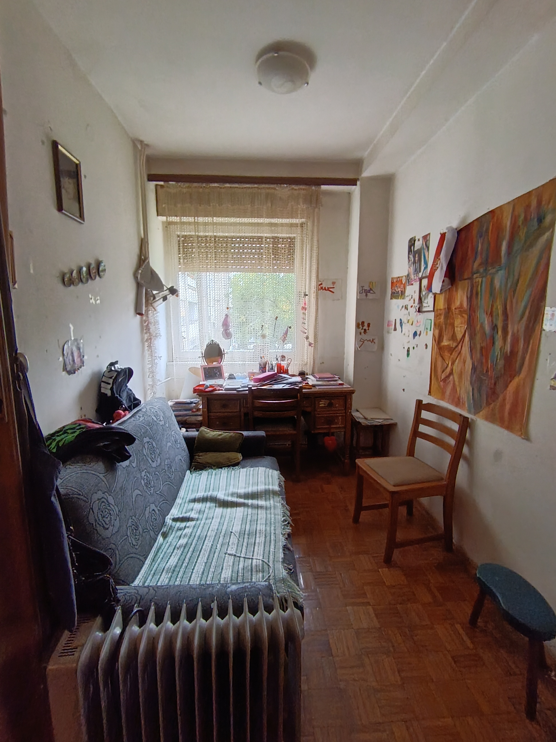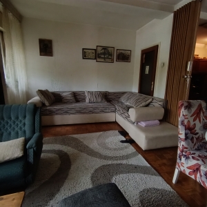 Stan se nalazi u donjem delu naselja, izuzetna lokacija. Istocno orjentisan. Sastoji se od dnevnog boravka iz kog se izlazi na veliku terasu, kuhinje koja ima izlaz na lodju, spavace sobe, decje sobe, kupatila i hodnika. Pripadajuci podrum. U izvornom stanju. Zgrada je uredjena, kao i prostor oko zgrade. Veliki parking.