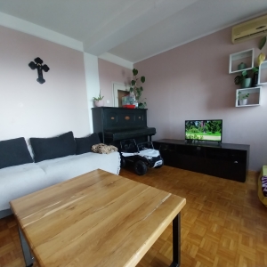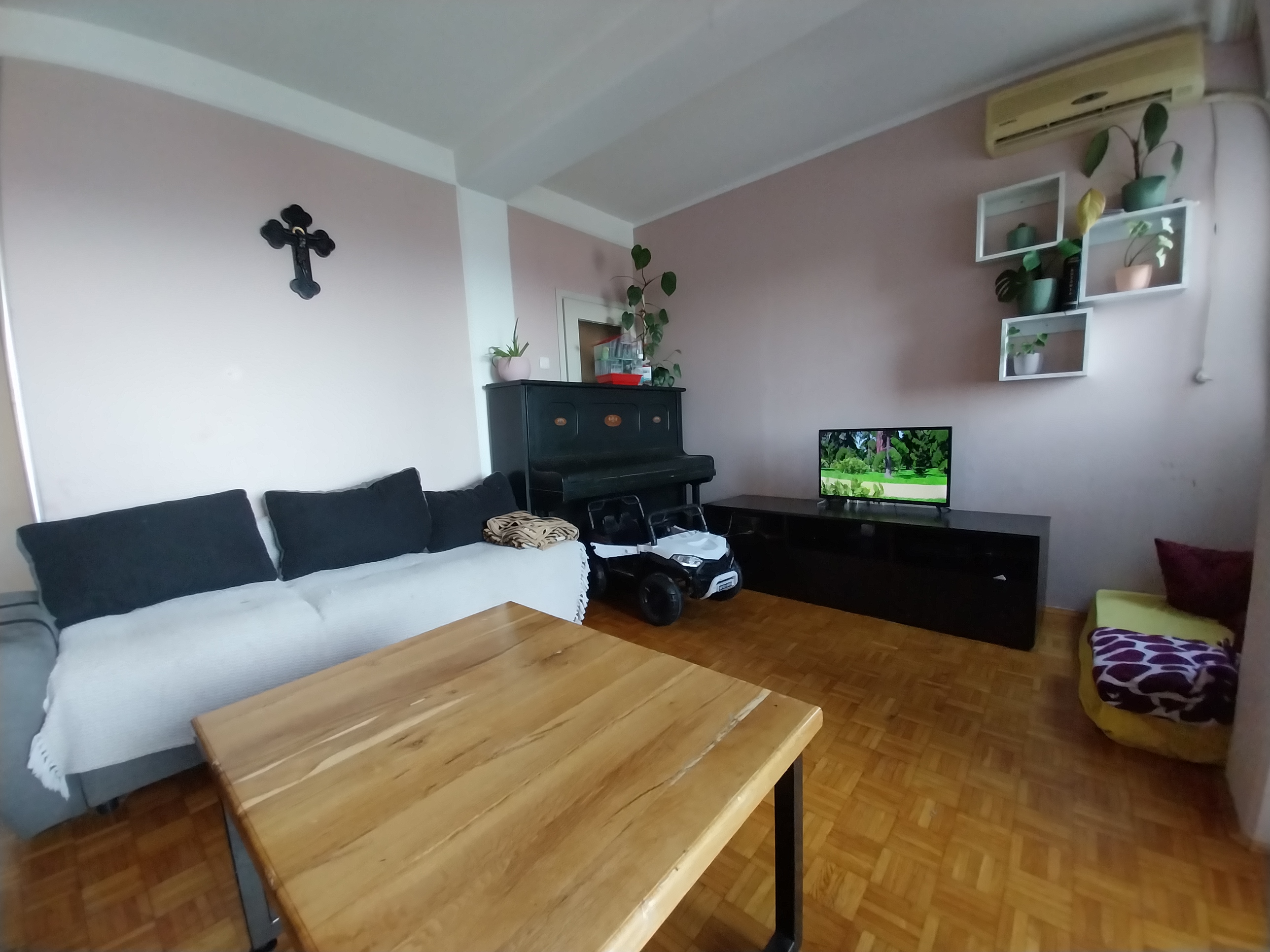 Stan se nalazi na pocetku naselja, u blizini crkve. Idealna lokacija sa svim sadrzajima potrebnim za zivot:pijaca, pekare, marketi,osnovna skola, vrtic...Parking i zelene povrsine oko zgrade. Sastoji se od prostranog dnevnog boravka koji ima izlaz na terasu,izdvojene kuhinje, tri spavace sobe, kupatila, toaleta i hodnika. Pripadajuci podrum. Uknjizen, moguca kupovina putem stambenog kredita.