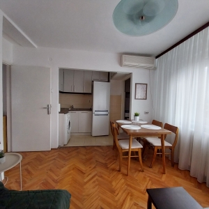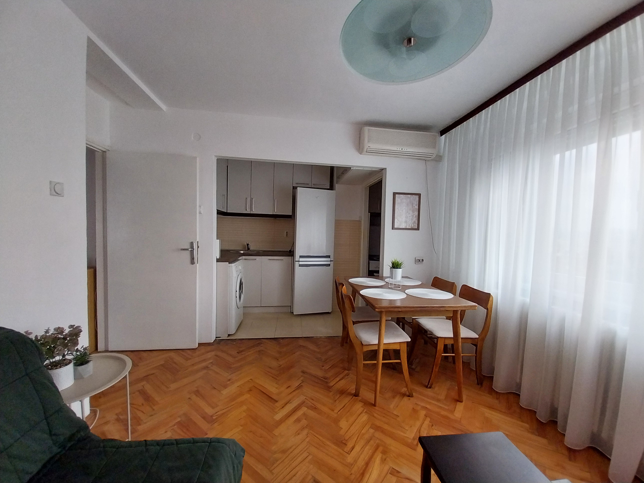 Stan u odlicnom stanju na cetvrtom spratu u zgradi bez lifta. Sastoji se od dnevnog boravka sa kuhinjom i trpezarijom, dve spavace sobe, hodnika i kupatila. Renovirano kupatilo, kuhinja i postavljena PVC stolarija. Stan se prodaje sa namestajem i tehnikom.