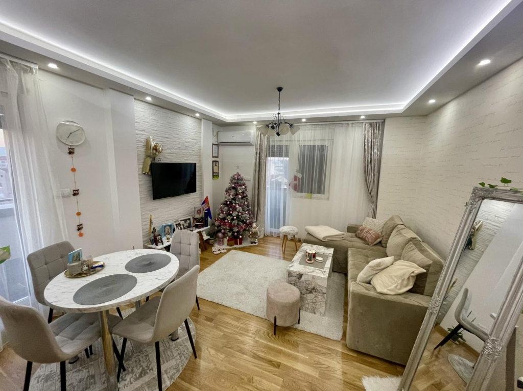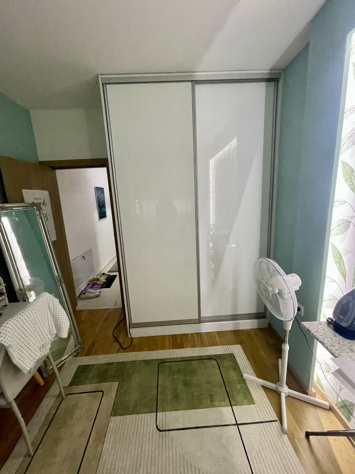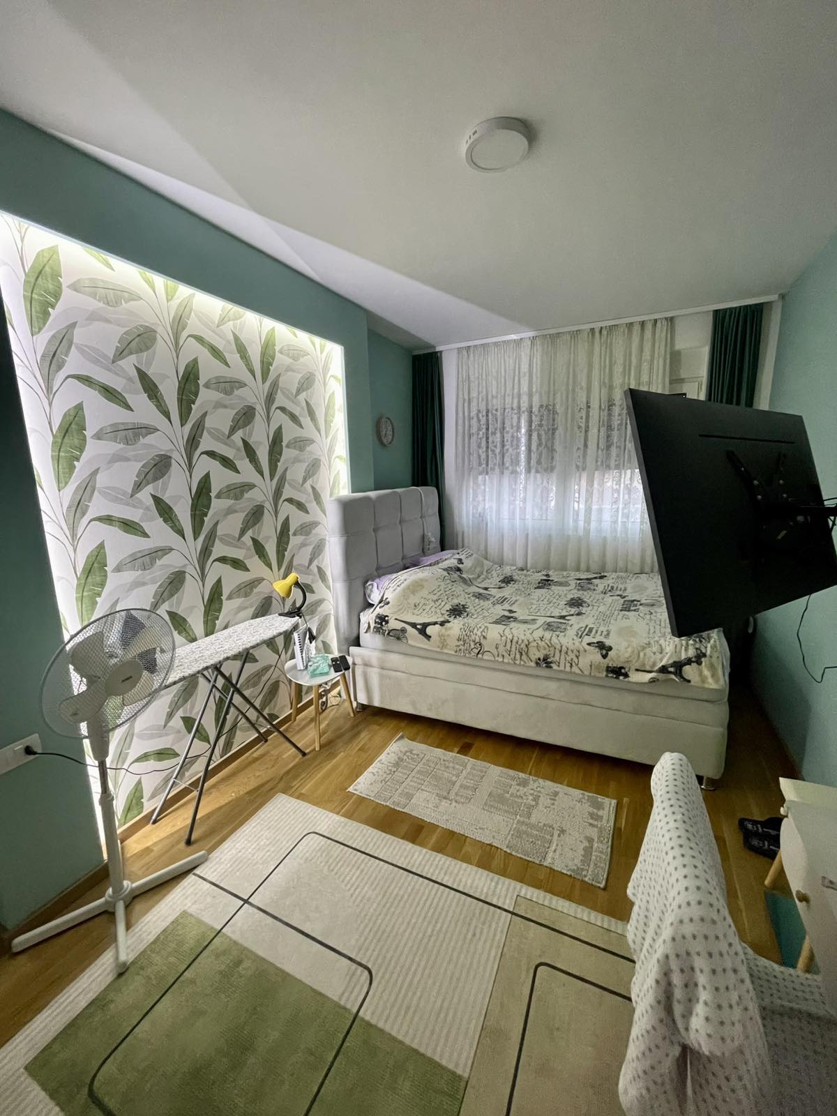 Dvosoban stan novije gradnje, brzo useljiv. Blizina osnovnih i srednjih skola, klinickog centra i Velikog parka. Sastoji se od dnevnog boravka sa kuhinjom i trpezarijom, dve terase, spavace sobe i kupatila. Stan se prodaje kompletno opremljen namestajem i tehnickim uredjajima. U zgradi se nalaze dva lifta, grejanje na gas, nije poslednji sprat.