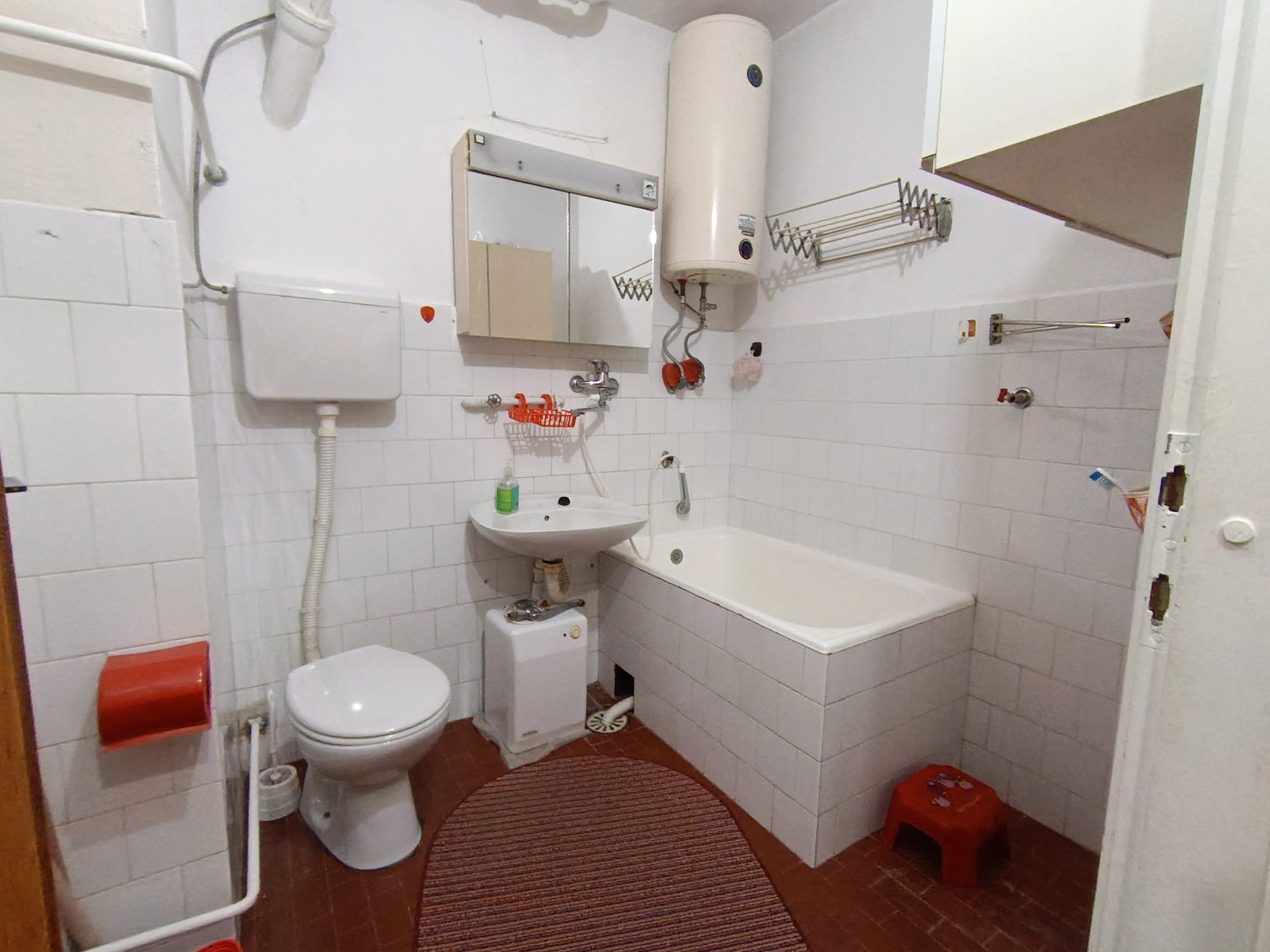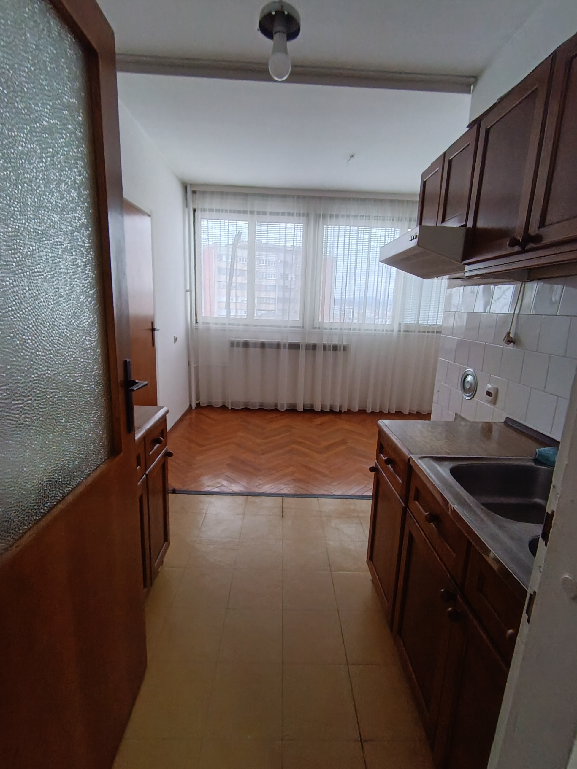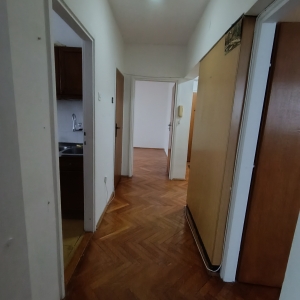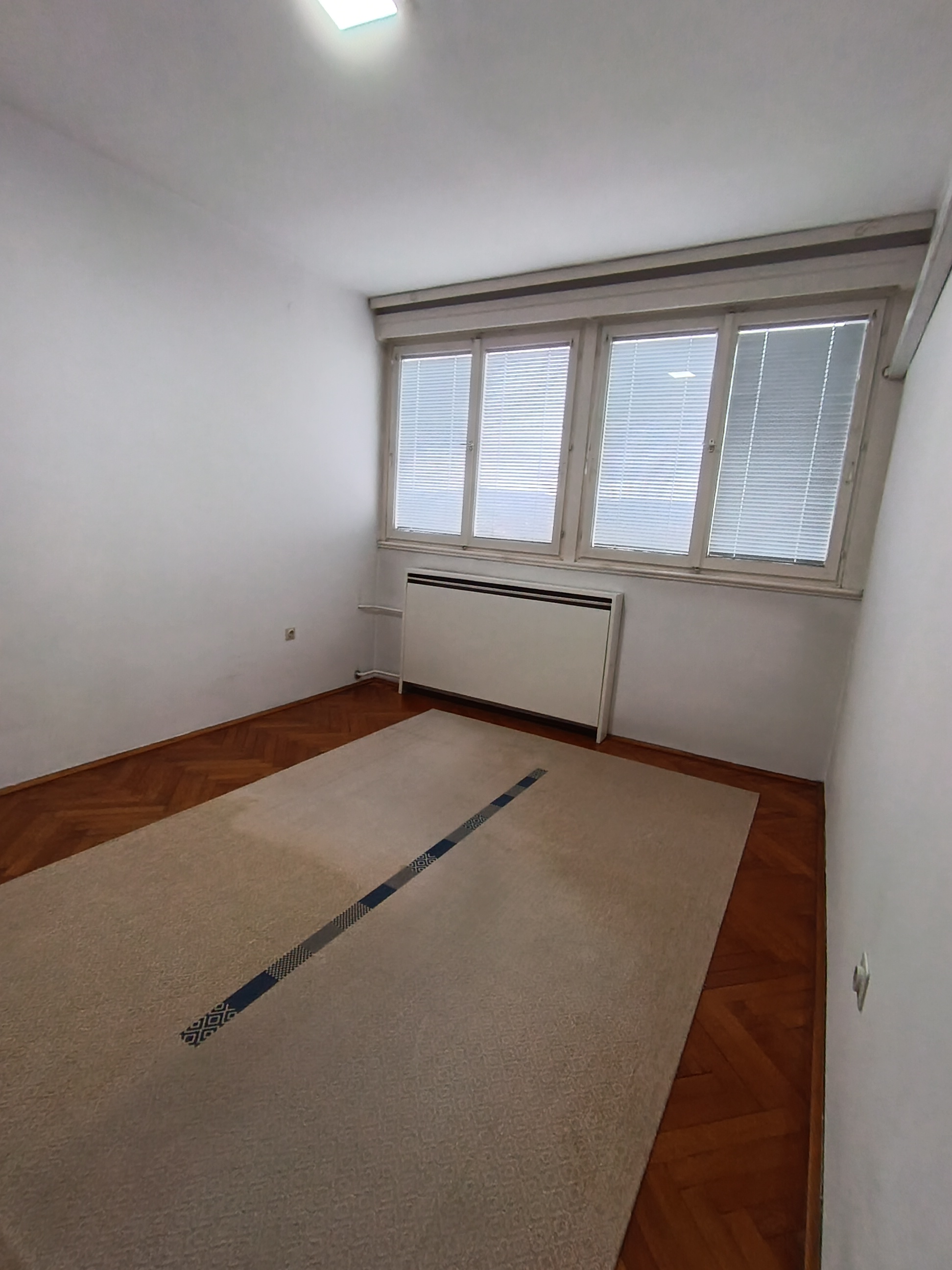 Stan u strogom centru grada, odmah useljiv. U dobrom stanju. Sastoji se od dnevne sobe, kuhinje sa trpezarijom, dve spavace sobe, ostave, predsoblja i kupatila. Dva lifta u zgradi. Veliki javni parking oko zgrade.