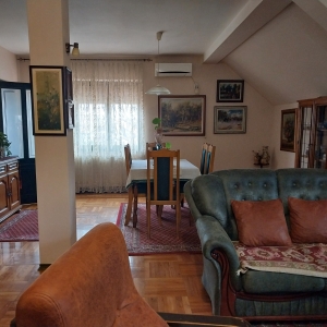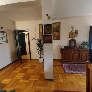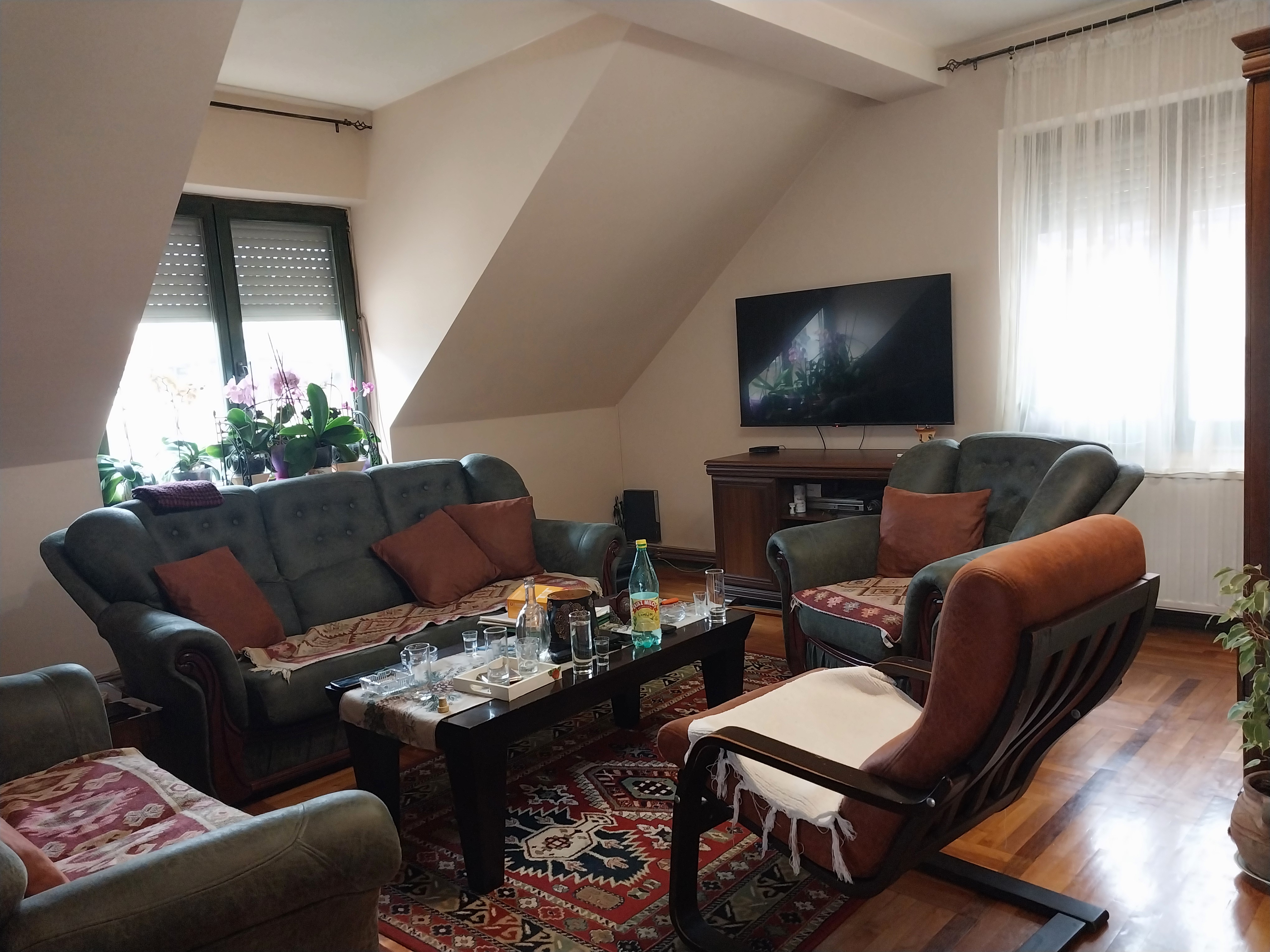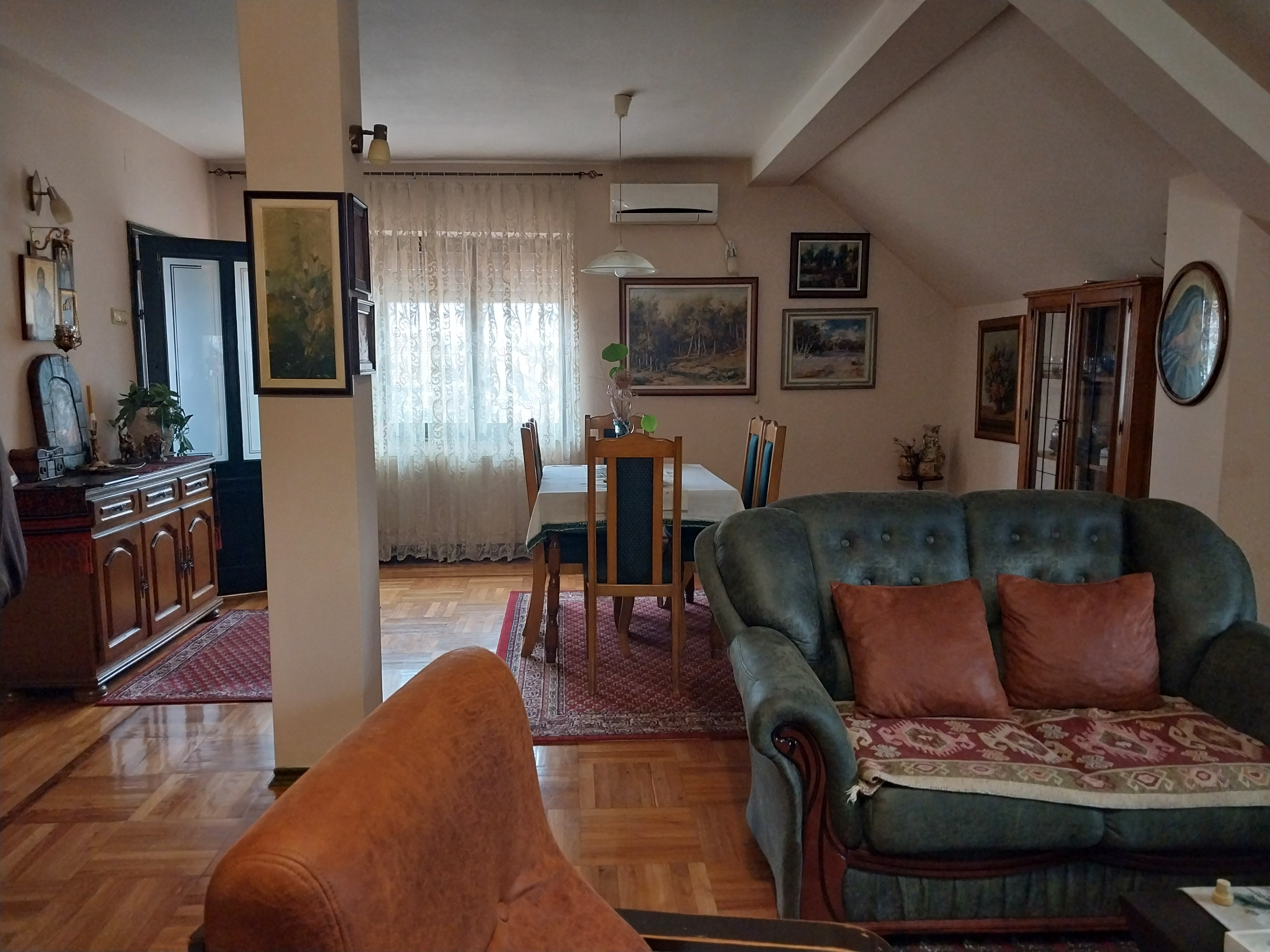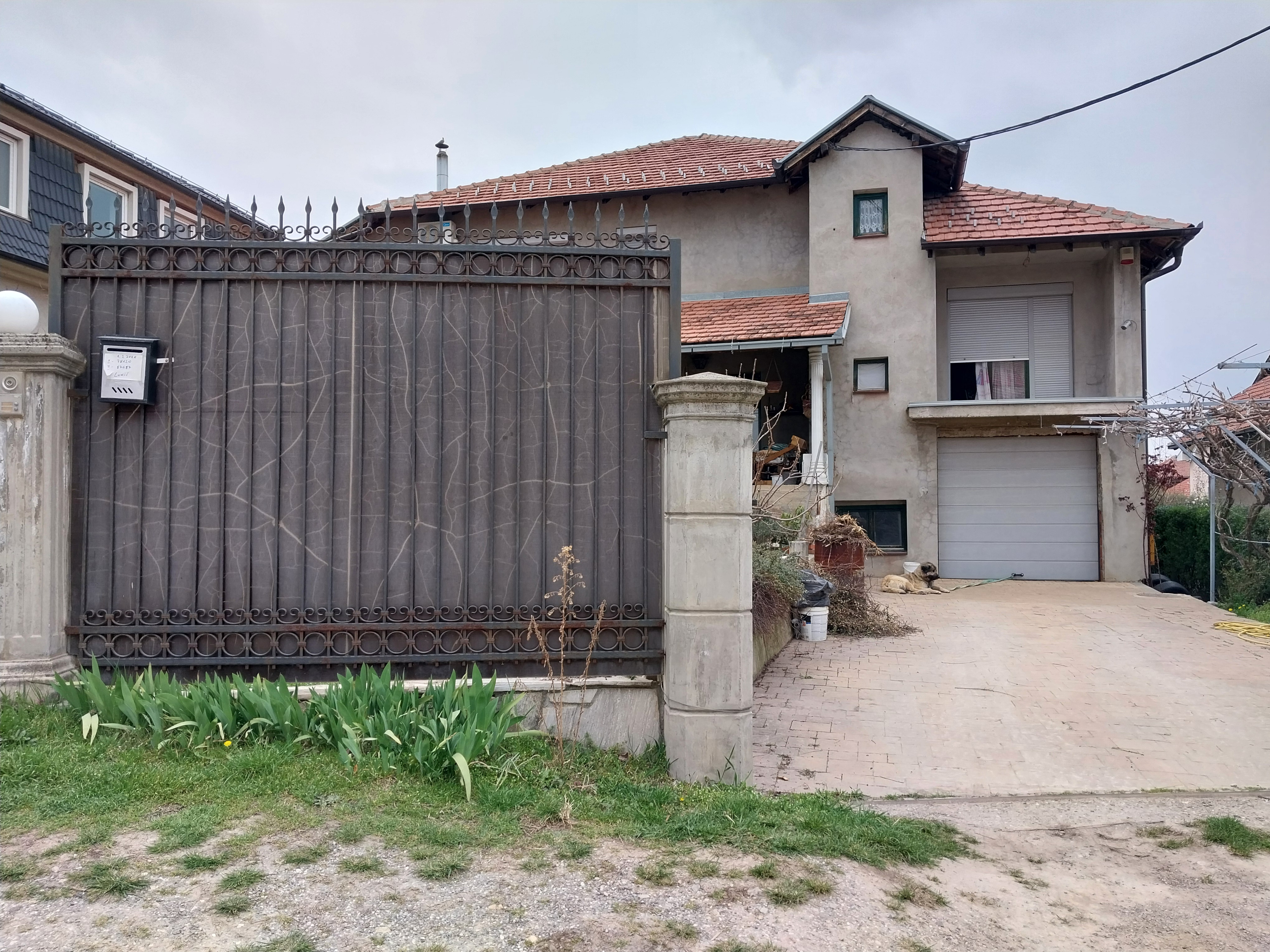 Kuca se nalazi na pocetku naselja u blizini crkve. Novogradnja, sa tri etaze i dva ulaza. U suterenskom delu je garaza, kotlarnica, dve podrumske prostorije. Visoko prizemlje je nezavrseno(siva faza), sastoji se od prostranog dnevnog boravka koji ima izlaz na terasu, kuhinje,trpezarije,hodnika i garsonjere sa kupatilom. Obzirom da je nezavseno moguca je promena rasporeda. Unutrasnje stepenice vode na medjusprat-dve spavace sobe, terasa i kupatilo. Na drugom spratu je dnevni boravak sa trpezarijom, kuhinja, dve spavace sobe, kupatilo, terasa. Dve ostave u tavanu. Medjusprat i drugi su sredjeni,useljivi. Etazno grejanje na cvrsto gorivo, moguc prikljucak na gas. Zidana po sistemu senvic zid :blok-kamena vuna-cigla.Zvucna podna izolacija. Obezbedjena video nadzorom i alarmnim sistemom.Ograda kovano gvozdje, kapija sa daljinskim upravljanjem.