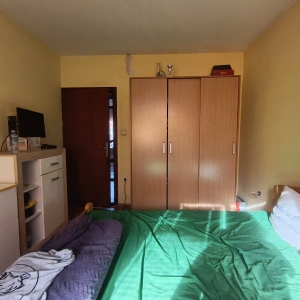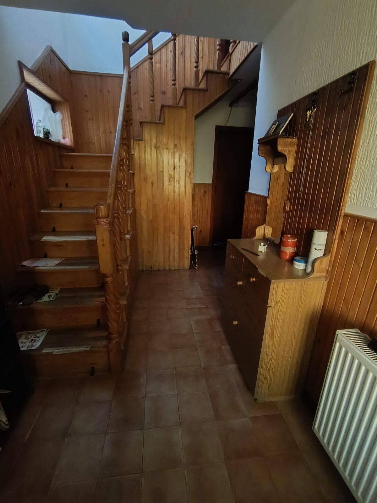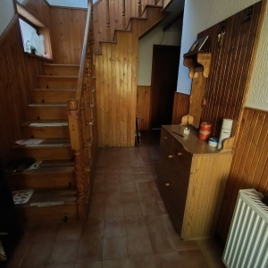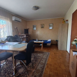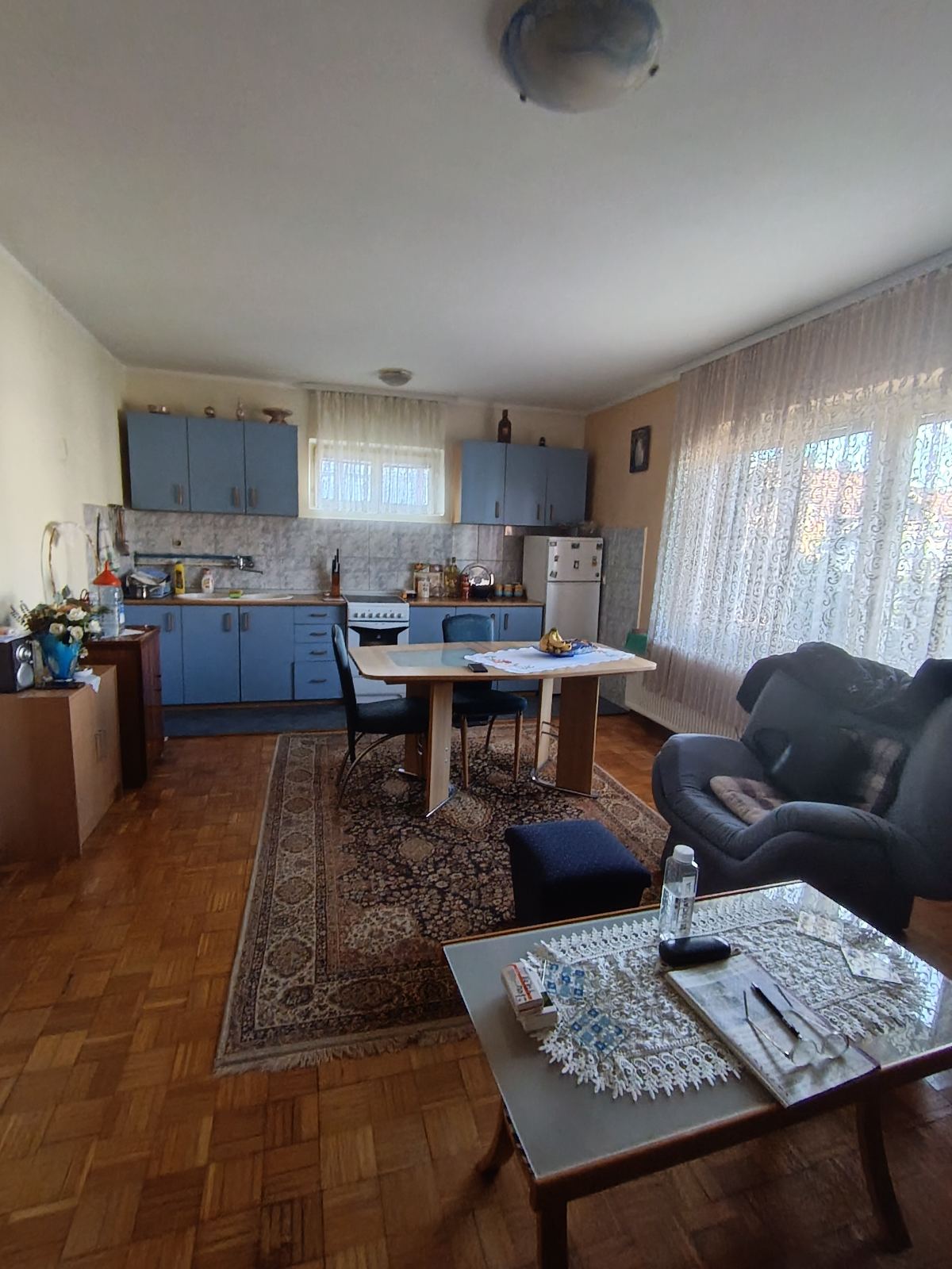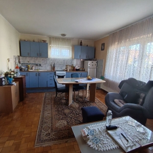 Kuca se nalazi u mirnom delu naselja u blizini osnovne skole i srednjih skola. Porodicna kuca, u osnovi 72m2, prizemlje + sprat. Gradjena devedesetih. Prizemlje se sastoji od dnevnog boravka sa kuhinjom i trpezarijom, kupatila i garaze. Unutrasnje stepenice za sprat, koji se sastoji od dnevnog boravka sa kuhinjom i trpezarijom, terase, dve spavace sobe i kupatila. Na podovima parket i plocice, drvena spoljna stolarija, grejanje na gas.