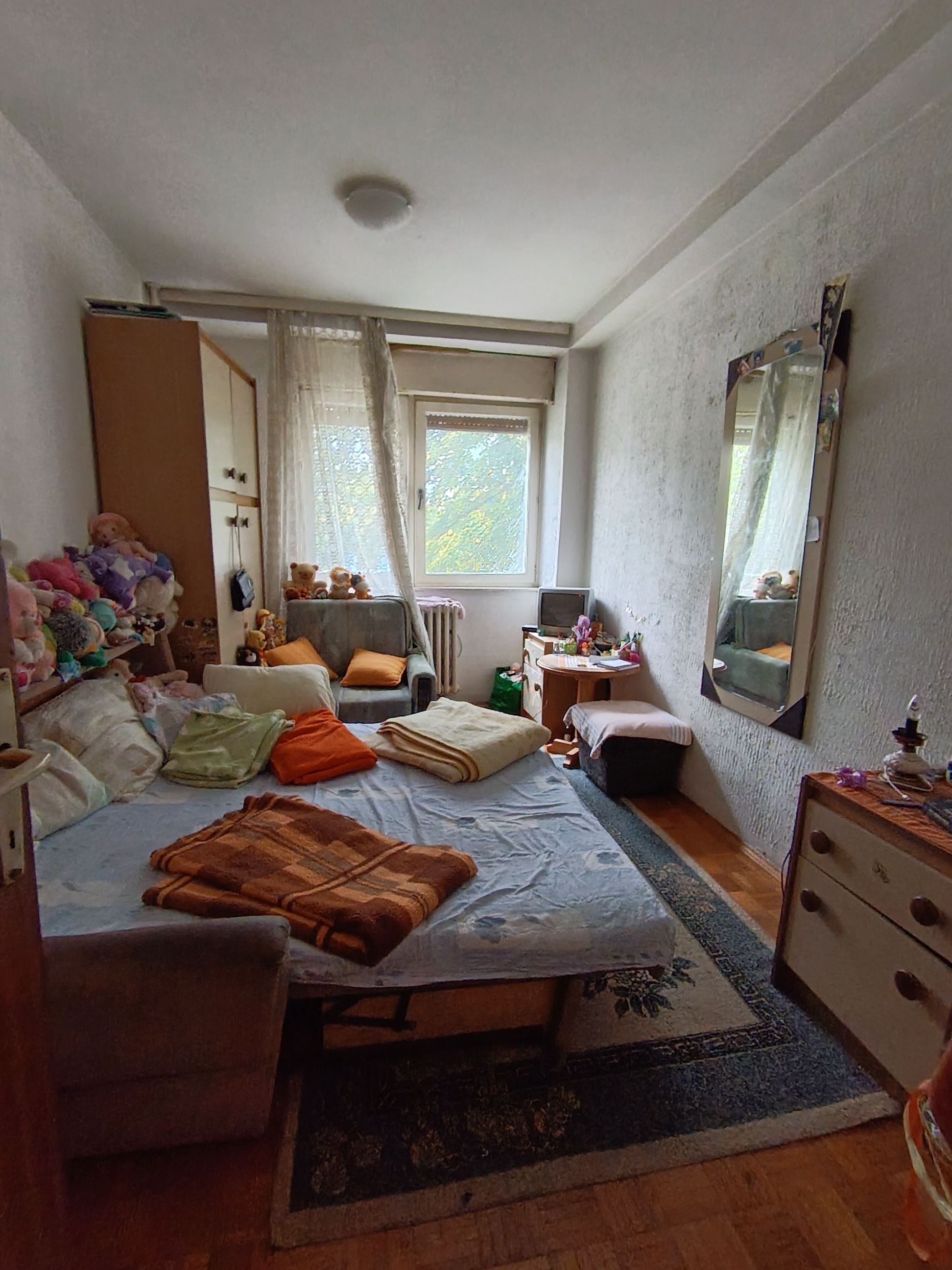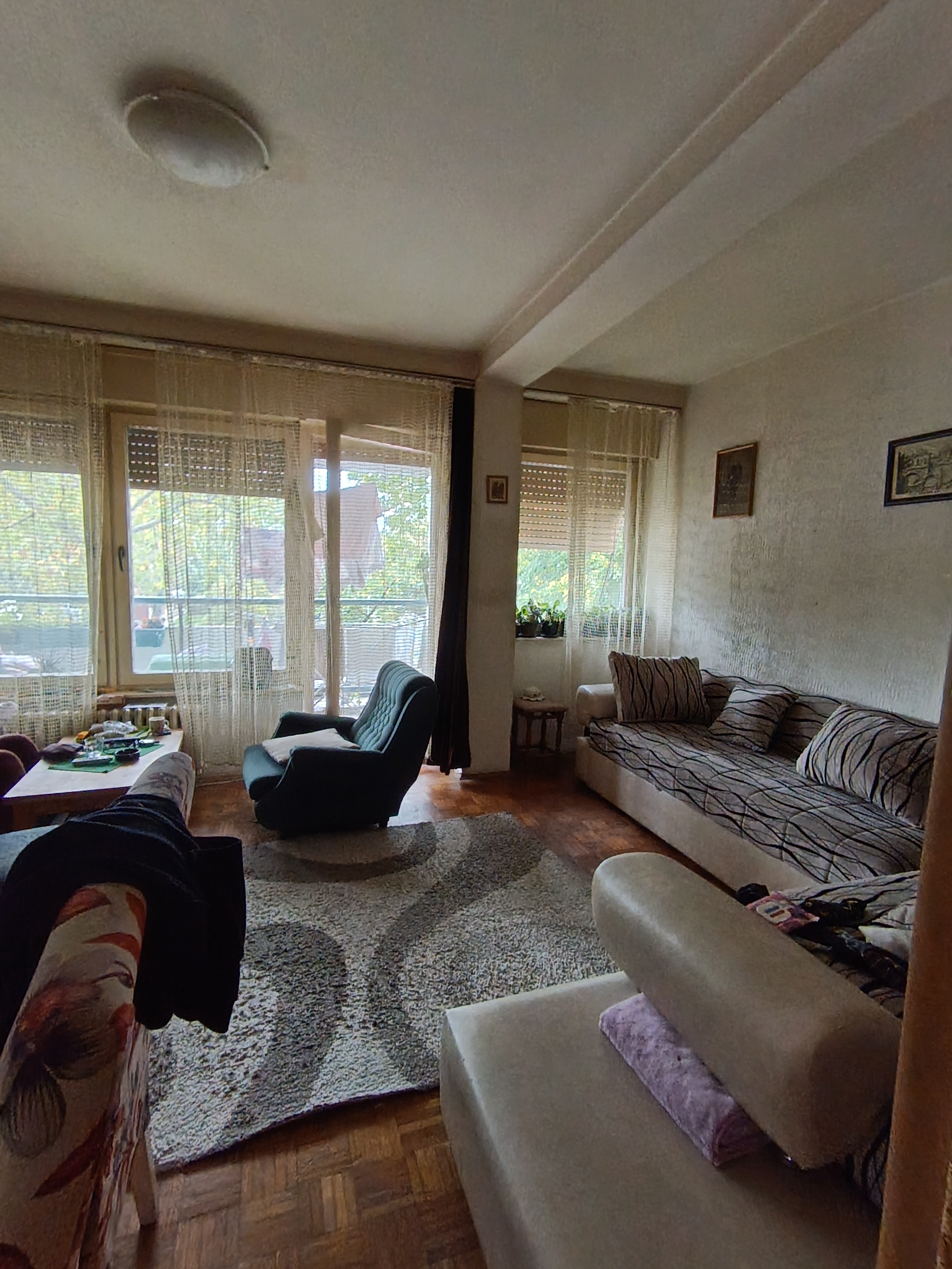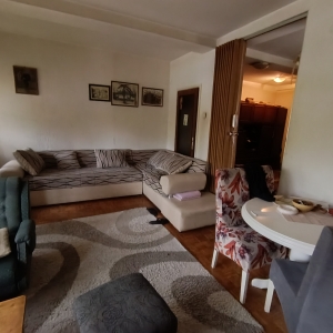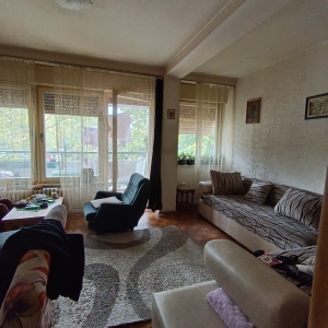 Stan se nalazi u donjem delu naselja, izuzetna lokacija. Istocno orjentisan. Sastoji se od dnevnog boravka iz kog se izlazi na veliku terasu, kuhinje koja ima izlaz na lodju, spavace sobe, decje sobe, kupatila i hodnika. Pripadajuci podrum. U izvornom stanju. Zgrada je uredjena, kao i prostor oko zgrade. Veliki parking.