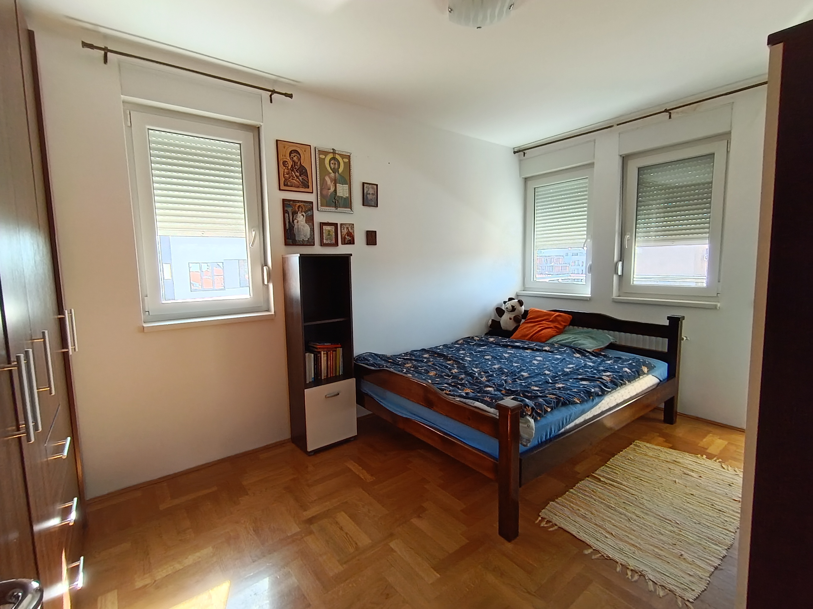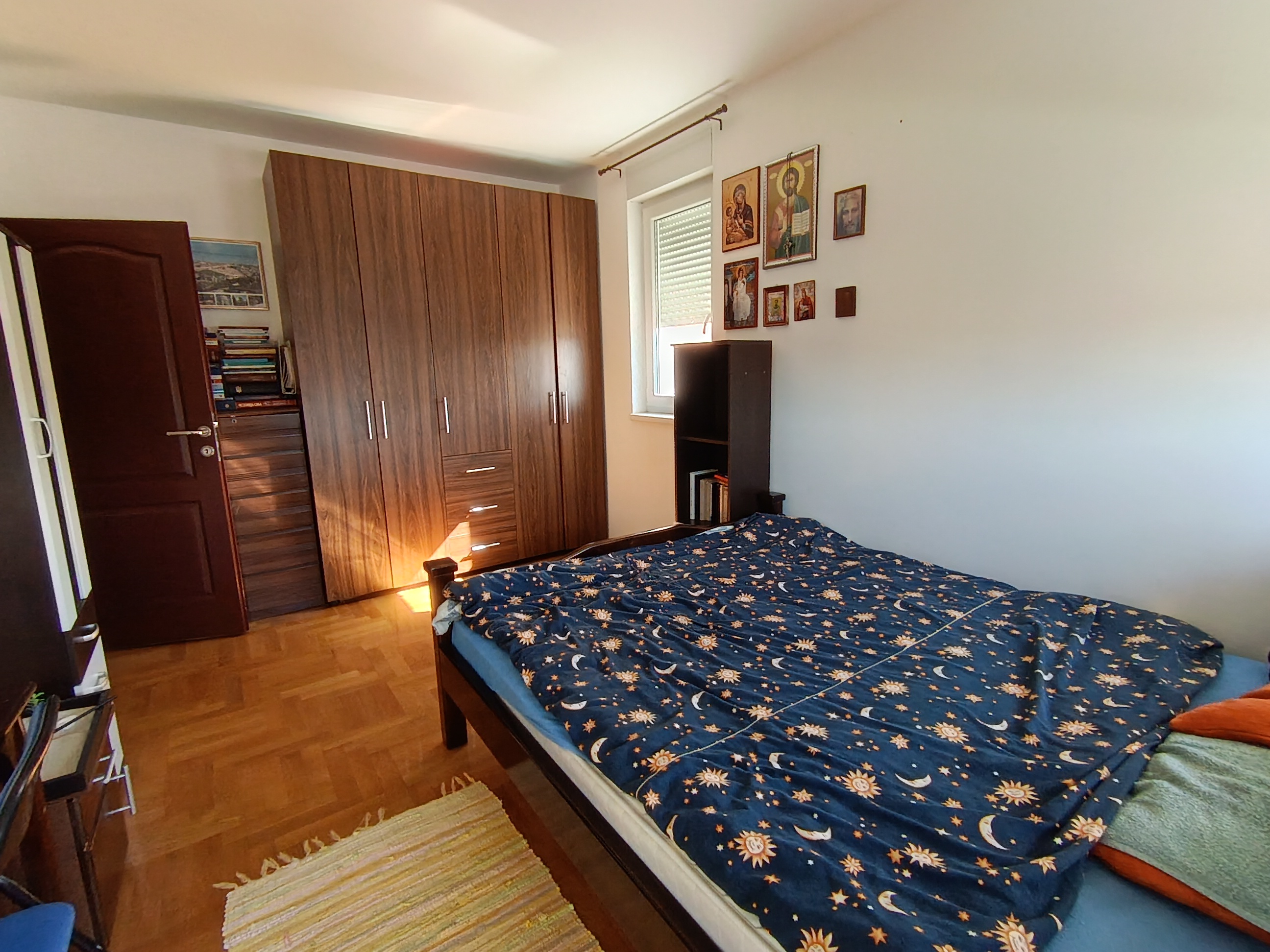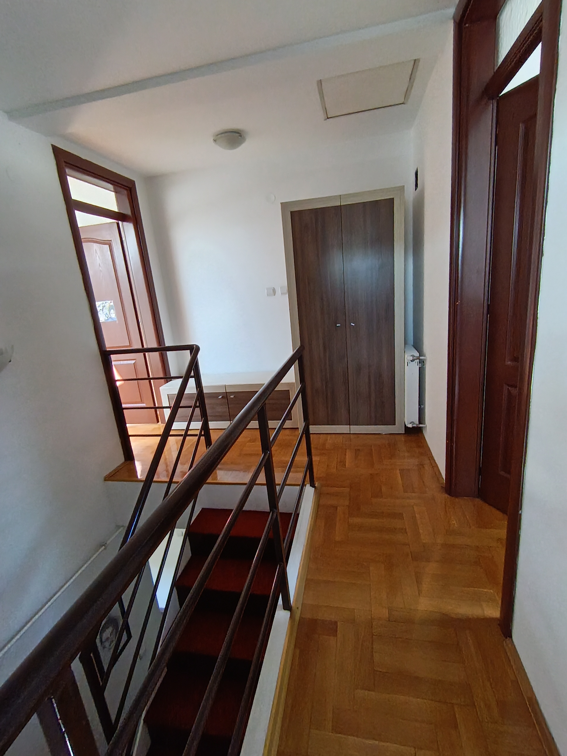 Lepa lokacija za stanovanje, posebno za porodice sa decom. Zgrada sa malim brojem stanova. Dupleks u donjem nivou povrsine 63m2: dnevni boravak koji ima izlaz na terasu, izdvojena kuhinja, spavaca soba koja takodje ima izlaz na terasu,kupatilo i hodnik. Na drugom nivou povrsine 35m2 su dve spavace sobe (jedna ima ostavu celom sirinom sobe), kupatilo i hodnik. Stan je uknjizen na 62m2. Ne zahteva ulaganja, zgrada je izgradjena pre desetak godina. Moguca kupovina parking mesta na placu zgrade.